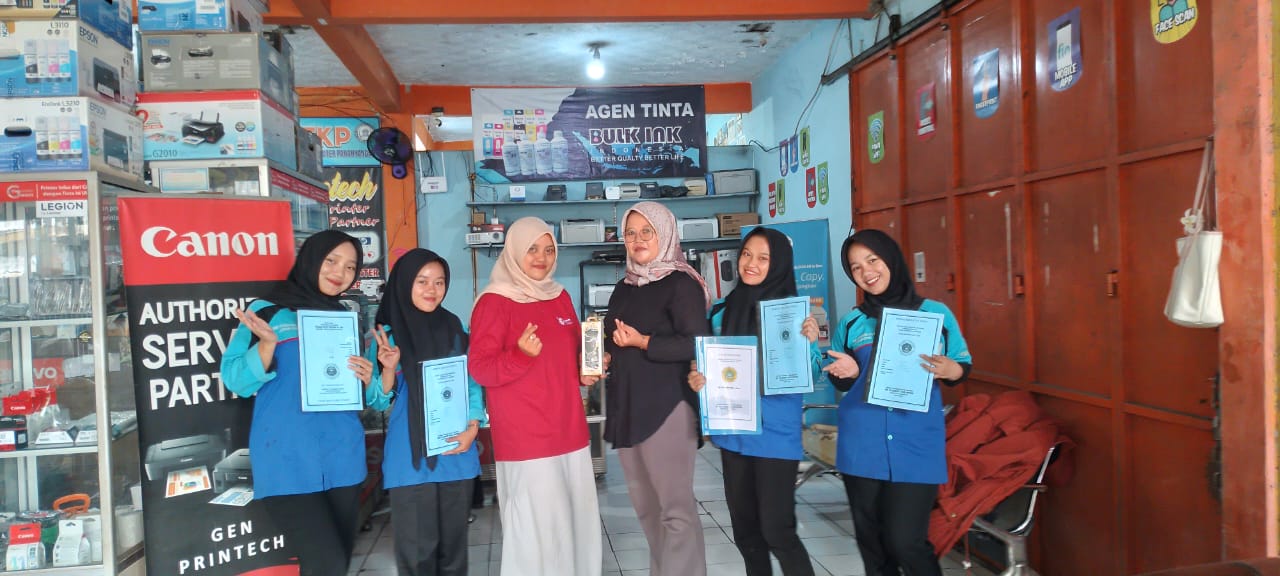 • Penanganan Peripheral: Siswa terlihat cekatan membantu teknisi senior dalam memperbaiki printer macet (paper jam), mengisi ulang tinta, hingga membersihkan lensa projector yang akan digunakan untuk rapat.